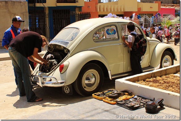 It’s getting really frustrating! Herbie is not fixed yet because there is still one part missing. Everything was perfect until our Love Bug got on his vessel heading South.