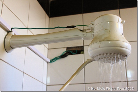 We are both adventurers, but we’re trying to avoid such showers in Latin America.