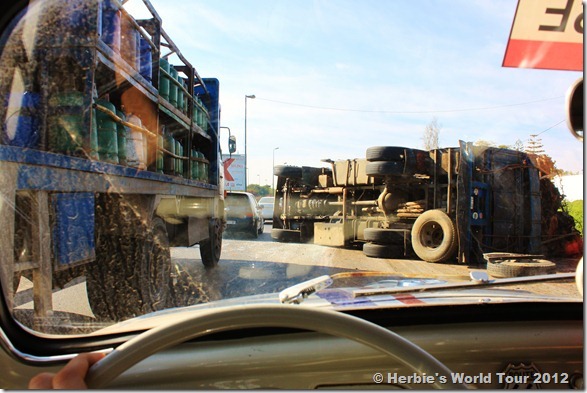 Today we just escaped again a horrible car accident on our way out of the city center. And this was already number three today. A big truck just passed out to the side.
