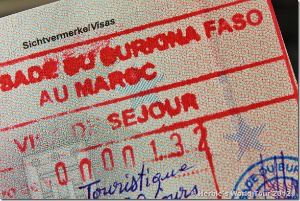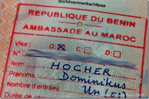 Good news! We got already visas for seven countries since we are in Morocco’s capital. So, there are just four more left we are eager to get: Nigeria, Democratic Republic of the Congo, Cameroon and Sudan. Here are some examples we obtained so far: