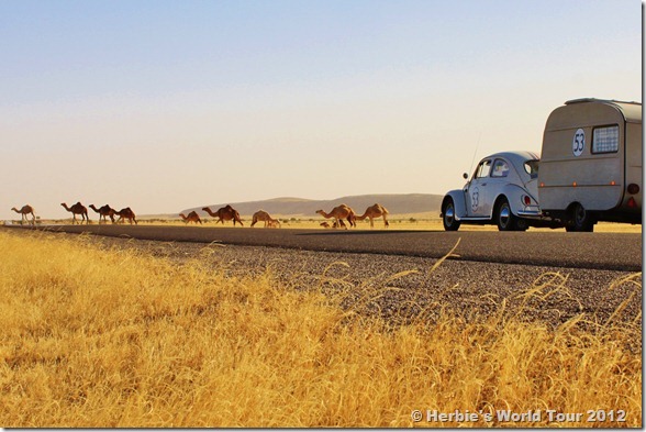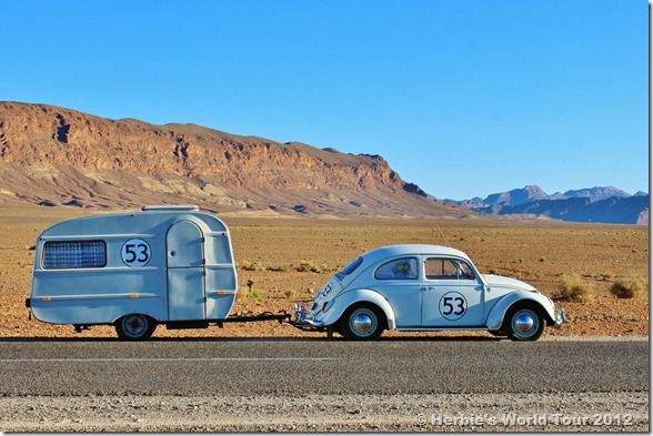 Since we left Rabat, we’ve driven across the Atlas Mountains of Morocco where Herbie had to climb up to 7,145 feet (2,178 m) while pulling our little camper. On our way we passed countless oasis as well as snow-capped hills, mountain lakes and rivers.