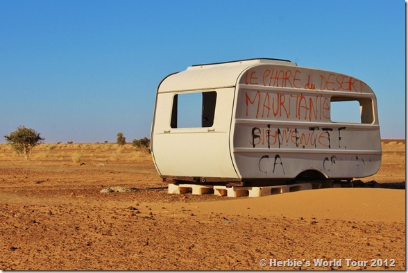 It was like a “Fata Morgana”, simply unreal! Today we spotted a “QEK Junior” camper, sitting in the Sahara Desert. Apparently an East German traveled to Africa, pulling his little home all the way to Mauritania and eventually just left it behind. This was probably the first “QEK Junior” camper we’ve seen, while traveling since 2009. But unfortunately this one is not on the road anymore. Rest in Peace!