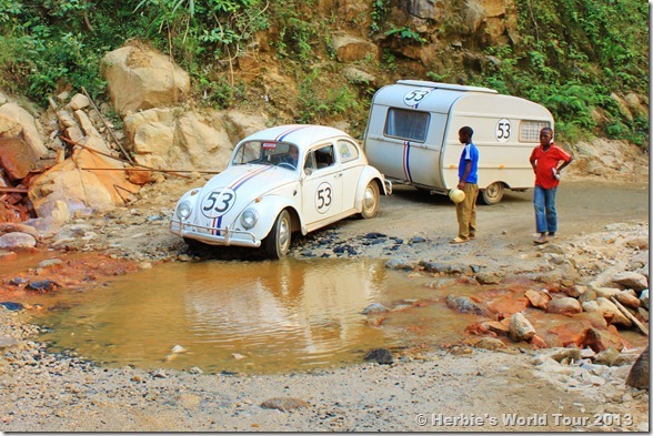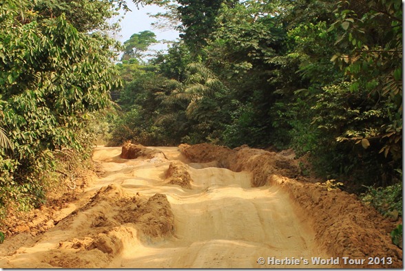 Today we finally entered Cameroon, where we were confronted with the worst road we’ve driven on Herbie’s World Tour so far. Thank God it is dry season! But anyway, Herbie prevailed, although he had to carry more than 120 liters (31 gallons) of gas.