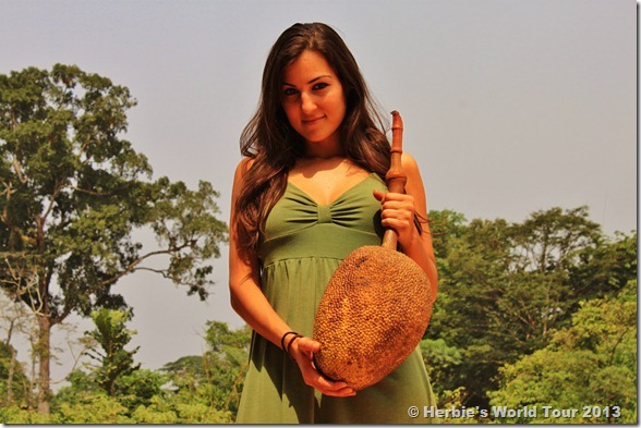 Nigeria is Africa’s gas haven. One liter cost just 50 Euro-Cent (60 US-Cent). Therefore we spent all the rest of our Nigerian money for fuel. And just before reached the border to Cameroon we spotted also a jack fruit for sale on the side of the road.