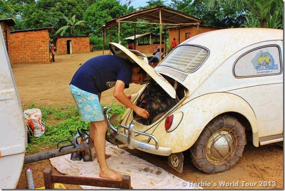 The consequences of Herbie floating in the water were fatal! “Rien ne va plus!” – Nothing worked anymore! Needless to mention that there is no mechanic you can rely on, in the middle of Congo’s jungle.