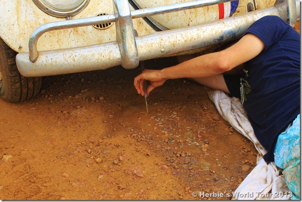 Due to those bad roads in Congo and Cameroon, we still had to get some things done on Herbie and the camper just as welding broken parts, flushing the gear fluid and getting rid of all the muddy water. However, Herbie’s back on track exploring Africa and we’ve just left Congo by crossing the border to Angola’s exclave, Cabinda.