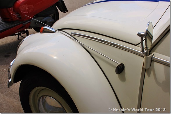 Somebody hurt Herbie last week! His rear bumper got hit and the radio antenna broken. We traveled around the world in 80 countries and nobody ever did this to Herbie.