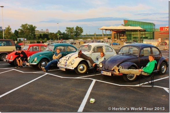 Domi celebrated Herbie’s B-Day together with our friends Georgy, Matthias and Florian (from left to right) and their Beetles at a vintage car show in the South of Vienna.