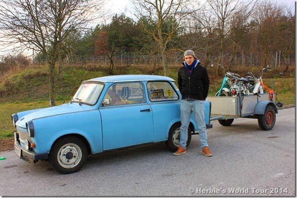 They picked up the motorcycles in a trailer pulled by our two-stroke powered “Trabi de Luxe”. And they even carried two bicycles they purchased for friends.