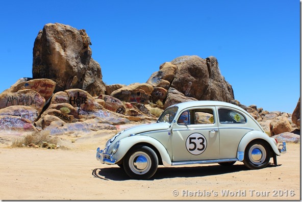 We are happy to be back in the US, driving the Number 53 around! And we are excited to get started and to continue Herbie’s World Tour. On Thursday we’ll probably leave Ridgecrest, heading South towards Palm Springs and Salton Sea.