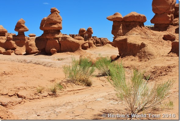 There was a lot to see today. On our way up North, we visited the Natural Bridges National Monument, the Glen Canyon and the Goblin Valley State Park. We were heading from Mexican Hat on the highways no. 261, 95 and 24 to Green River.