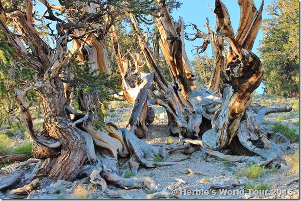 Herbie had to climb a pretty steep winding road up the White Mountains, where these magnificent trees are located. In addition to that we had to take a little hike along a trail where we could spot some of the oldest Bristlecone Pines out there. Even though it was a long way up, it is well worth visiting this wonder of nature.