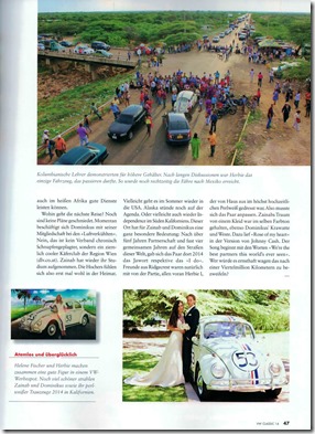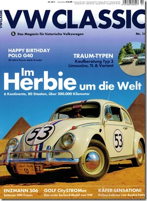 Check out the latest edition of the German “VW CLASSIC” including ten pages about Herbie’s World Tour! Thank you, Magdalena Weinle, for this wonderful article!