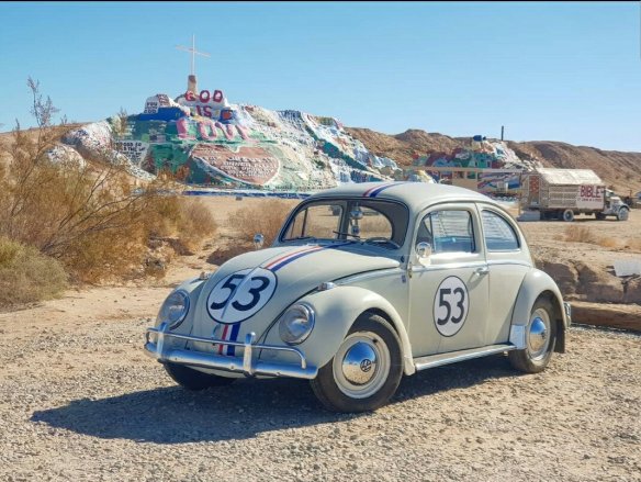Herbie at Salvation Mountain 💒 near Niland, California, by Leonard Knight who we met in 2010 during our trip around the world.