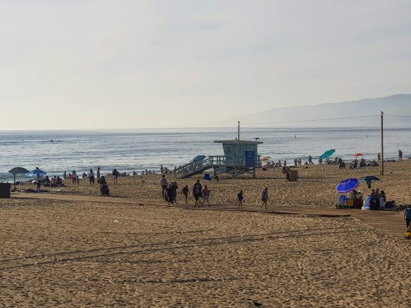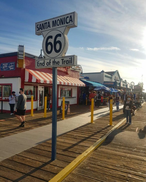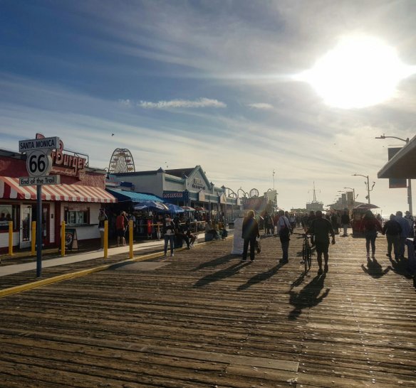 Enjoying a beautiful sunset at Santa Monica Pier.