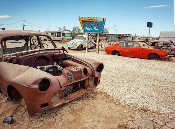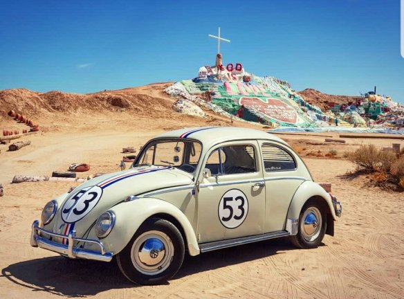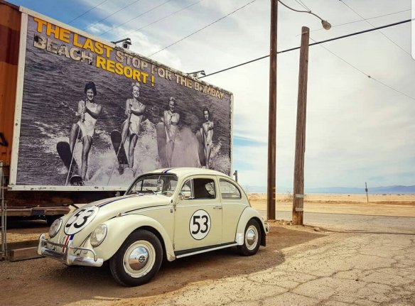 Taking Herbie for a ride to the apocalyptic 💀 town of Bombay Beach 🌊 at the Salton Sea.
